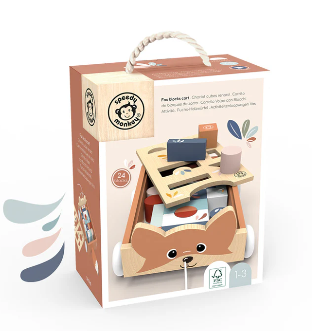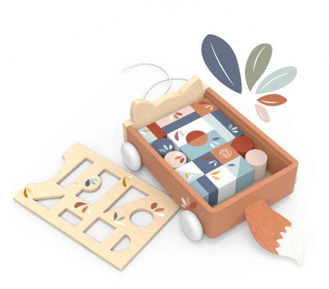 Encourage hands-on play, mobility, and imagination with the Fox Blocks Cart, a delightful companion for growing minds and busy little hands.